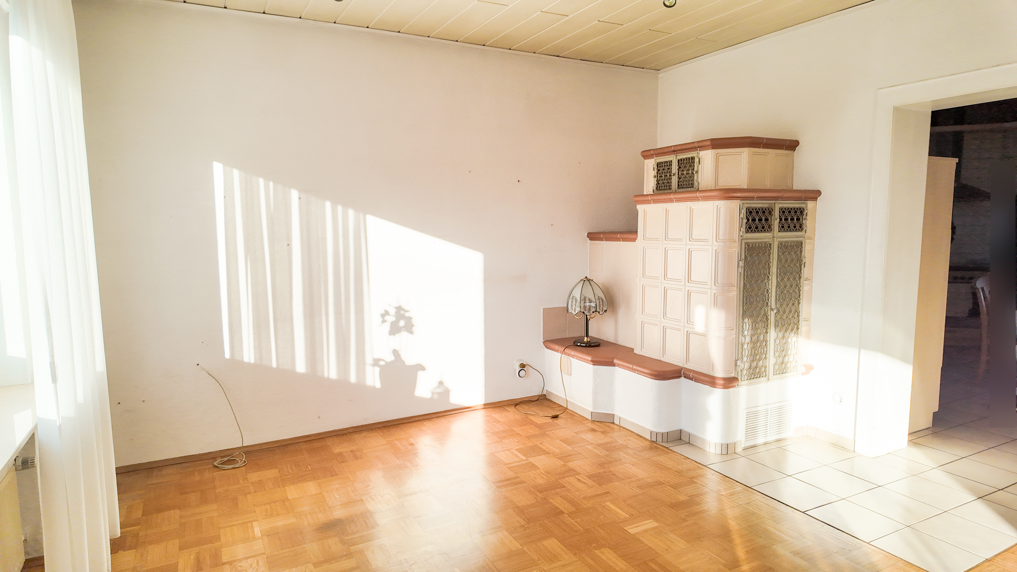 - Stilvoller Kachelofen im Wohnzimmer als zusätzlicher Wärmespender und gemütliches Highlight